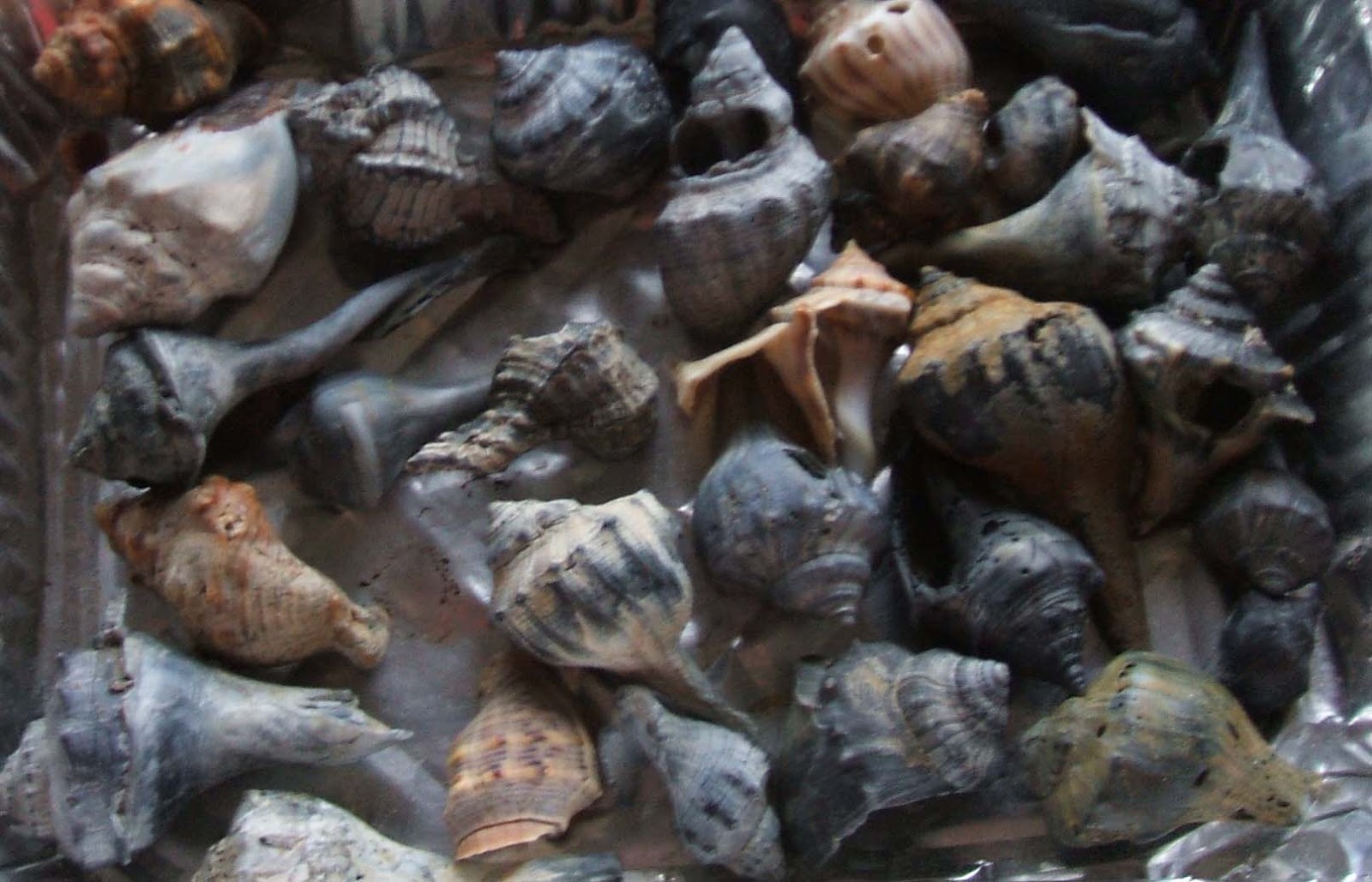 Well at least I think that is what I said when I had a look at the shells along the shore. We had just pulled up to the beach at Quintana, just south of Freeport along the Gulf Coast. Then I went over to the edge of the water, and there they were. Sea shells. But not just ordinary sea shells. Not the oysters and clam shells that have littered the other beaches. Oh no. This beach had the fancy ones. There were snails, whelks, conch, cones, murex and more. And they were everywhere. Some of the shells were broken, but we found several intact shells. I have never seen so many of these gastropods (univalve shells with no hinge) on a beach before. I was in my glory walking down the beach picking seashells. Ward and I walked about two miles of beach on this adventure. We sure are getting our exercise. Between shelling and birding / bicycling and walking, we are definitely getting our exercise.